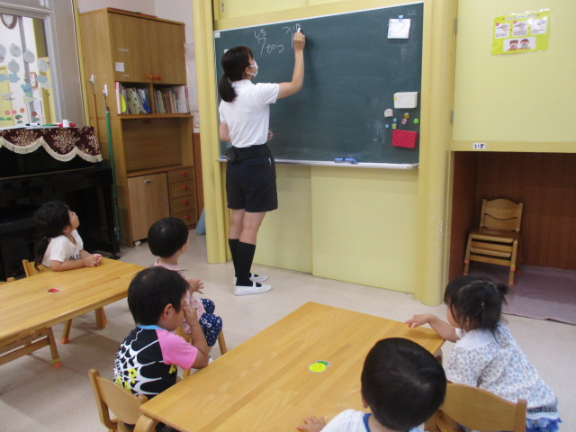 令和3年度、田喜野井旭こども園で2歳児、ひまわり組の副担任をさせて頂いております。クラスの子どもたちは、自分でやってみようと挑戦する姿が多く見られていて、お友達との会話も多くなり、楽しそうに話す姿にいつも元気をもらっています。子ども達と過ごす中で、行なえた事を一緒に喜び、楽しんでいろんな事に挑戦していける様にしていきたいと思います。